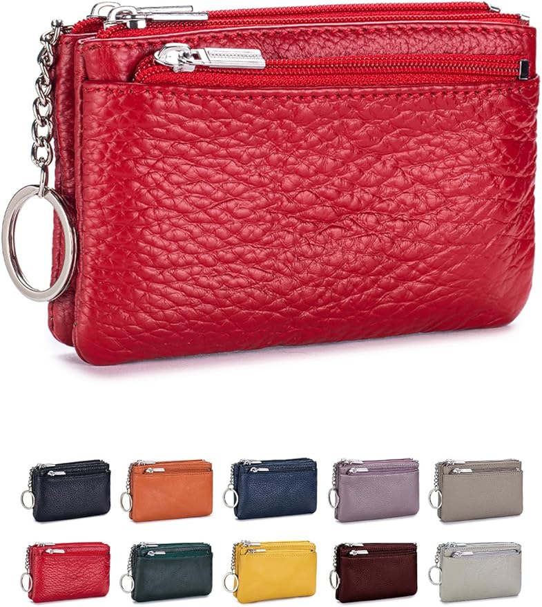 [Amzbag] 小銭入れ メンズ レディース 本革 【コインケース・カードケース・キーケース・ミニ財布一体型】3層式マルチポーチ キーリング付き 薄型 定期/コイン/カード/紙幣/キーを収納 コンパクト 仕分け 多機能 防水 おしゃれ ギフト (レッド)