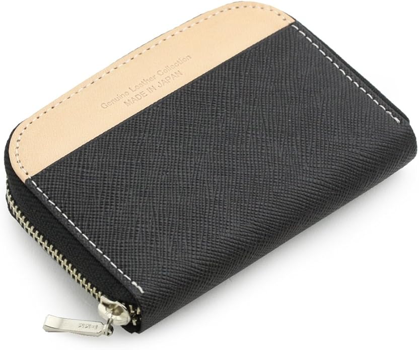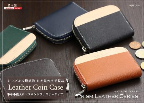 [アビエス] 日本製 本革 ラウンドファスナー小銭入れ プリズム(角シボ型押し牛革)
