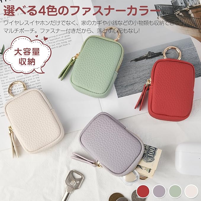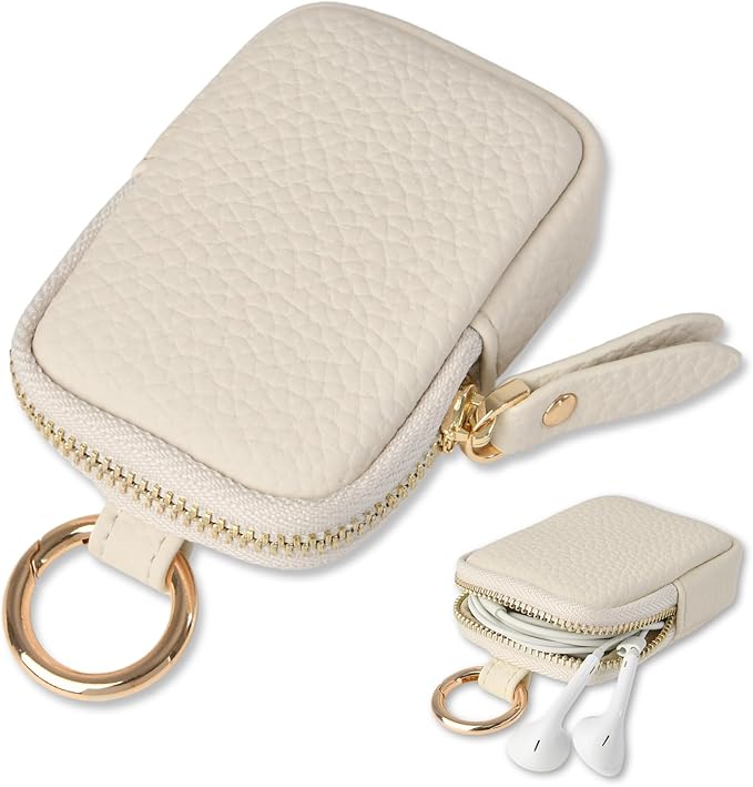 ミニポーチ ヘッドホン収納バッグ 小銭入れ PUレザー 化粧 財布 マルチ ケース コイン ジュエリー キーリング 手持ち 財布 ポーチ 小物入れ 小型 薄型 軽量 可愛い(オフホワイト)