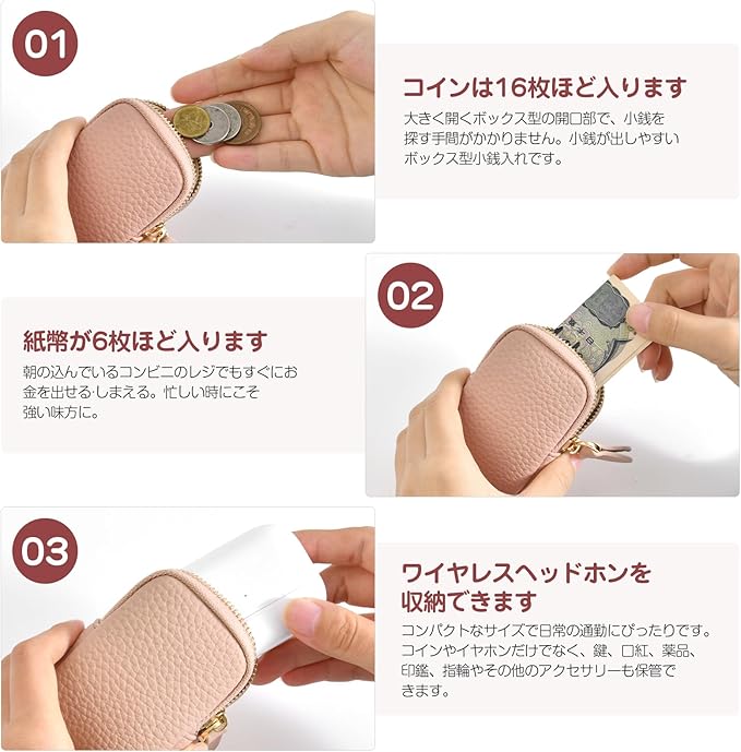 【大容量ルーム】小銭入れを使用すると、広々とした内部にヘッドフォン、小銭、口紅、鍵を保管できます。コンパクトでありながら洗練されたデザインにより、小物の整理が簡単になり、必要なものがすべて必要な場所に確実に収まります。