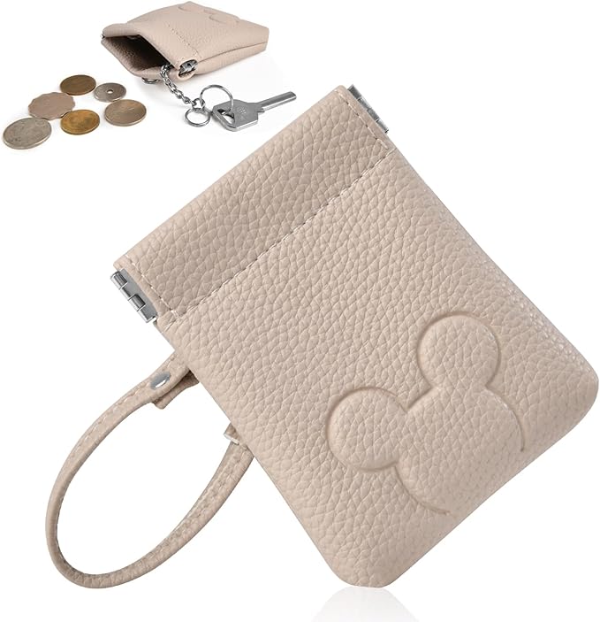 [Gineman]小銭入れ コインケース 財布 レディース 口金開閉 軽量 大容量 キーホルダー付き カード収納 日常通勤 ポーチ かわいい プレゼント対応 ピンクベージュ