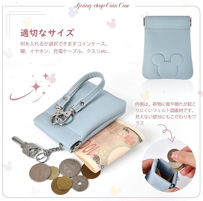 【片手で超便利な口金開閉】ワンタッチでサッと開く便利な口金デザイン!通勤中の駅改札やお会計時も、 日常通勤 やショッピングでスピーディーに小銭やカードを取り出せて、ストレスフリー。