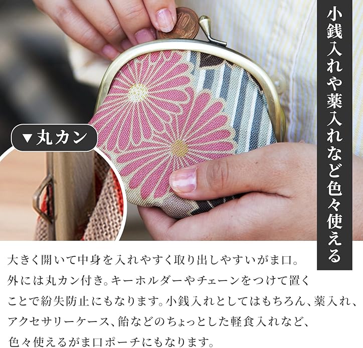 [のレン] レディース がま口 財布 / [ 親子がま口 14 12 2.5cm 二重がま口 外ポケット付き ] / [ がま口小銭入れ ミニ 丸型3.3寸 角形11.5 7.5cm ] / 日本製 がま口財布 コインケース カードケース 和柄 花柄