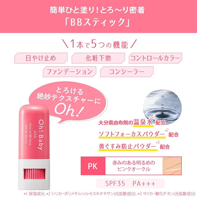 ハウスオブローゼ Oh!Baby ナチュラル BBスティック PK (ピンクオークル) スティックファンデーション SPF35 PA+++ 8g