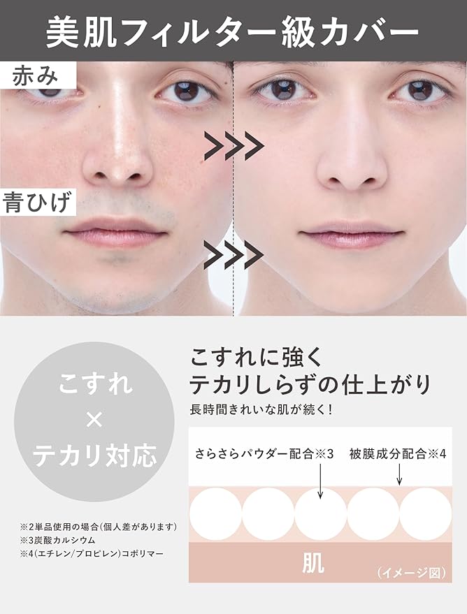 商品特長 簡単に肌悩みを隠す 毛穴 ニキビ跡 クマ 青髭 肌色 好印象な顔に仕上げる スティックタイプで直接塗るだけ ナチュラルな仕上がり 洗顔料で落とせる SPF47PA++++
