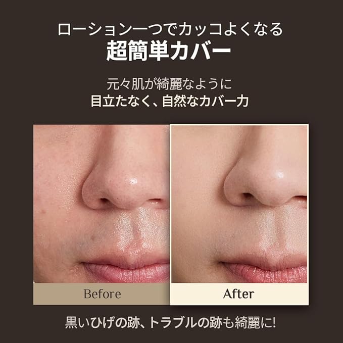 【1本でベースケアが完結】 BBクリーム・ローション・日焼け止めを1本にまとめたメンズ向けナチュラルカバーローション。忙しい朝のベースメイクを時短