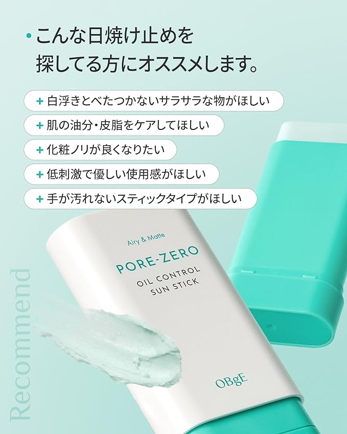 【公式】オブジェ (OBgE) オイルコントロールサンスティック 【日焼け止め メンズ 毛穴ケア 化粧下地 日焼け止め スティック 韓国コスメ】