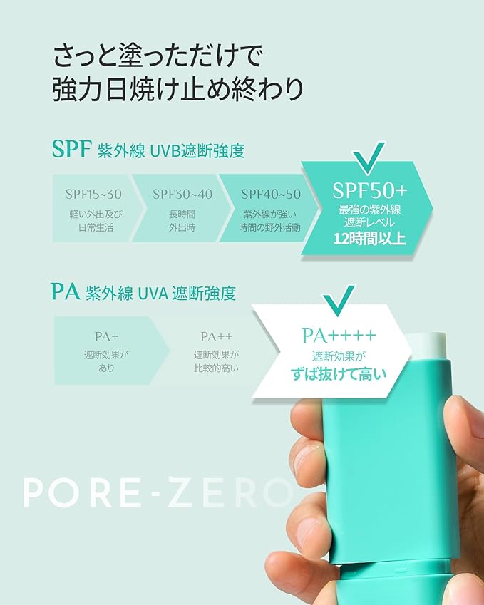 【SPF50+/PA++++】 高UVカットで紫外線対策。コンパクトな日焼け止めスティックだから、通勤・外出・レジャーの塗り直しにも便利