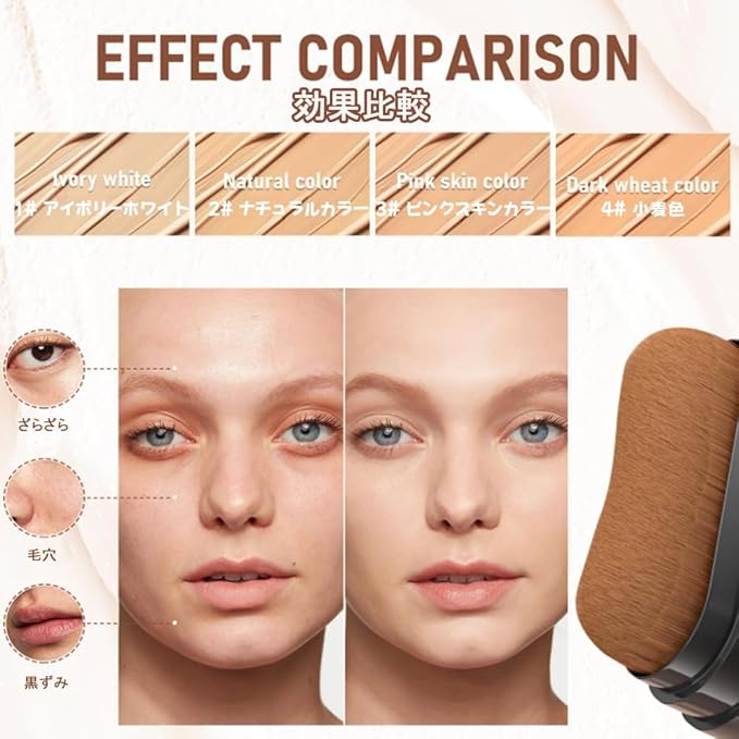 【ブラシ付きの優位性:高密着・長持ち】: ブラシによる密着塗布で、軽いのに美肌カバー力抜群。耐水・耐汗性に優れ、汗や摩擦にも強くメイク崩れしにくい。運動や水遊びの際も美しい肌をキープ。セッティングパウダー不要で、24時間輝く肌を。