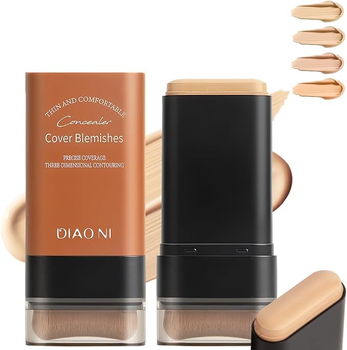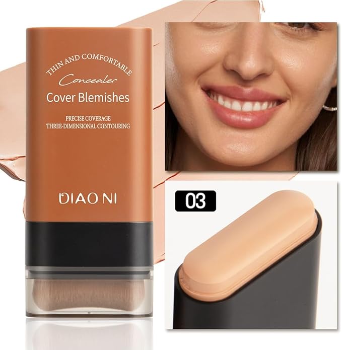 【時短メイク最強】LiangNiShi ブラシ付きファンデスティック|塗るだけ高カバー、ナチュラルカバー。毛穴、くすみ、シミをナチュラルに隠す。耐汗、崩れにくく乾燥肌もOK (3# ピンクスキンカラー)