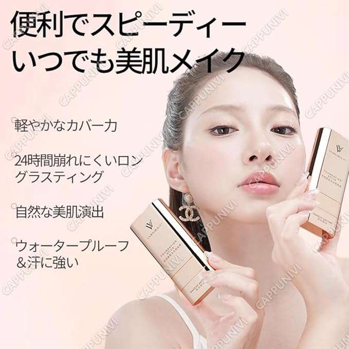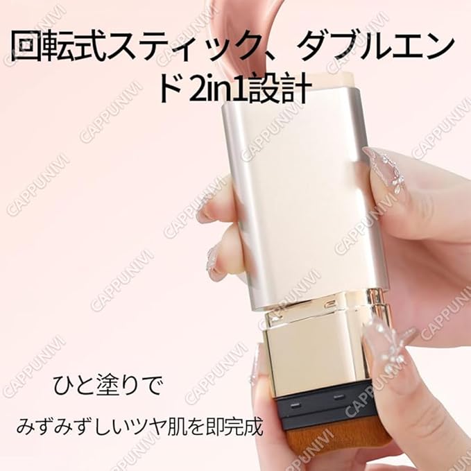 ダブルエンドファンデーションスティックは、回転式 2in1 設計でファンデーション・コンシーラー・下地・ブラシを一つに凝縮,朝 30 分も時間節約。高カバー力でシミ・色ムラ・毛穴を自然に隠し,厚塗り感・くすみ・ヨレ・粉浮きを解消。ウォータープルーフかつ汗に強く,24 時間崩れない長持ちで一日中透明感のある素肌をキープ。アジア人肌向けに #ライトベージュ・# ナチュラルベージュ・# ウォームベージュの 3 色を展開,初心者でも選びやすい。11 種の高級植物種子エキスで潤いを与え,乾燥も気にならない贅沢処方。便利でスピーディーに美肌メイクを完成させるこのファンデーションスティック,あなたのメイクルーチンをぜひ変えてみてください。