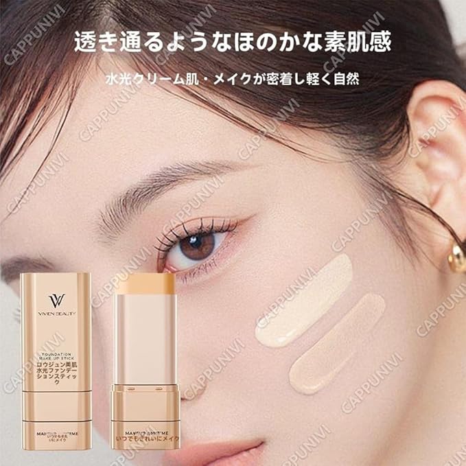 VIVIEN BEAUTY ファンデーションスティック ダブルエンド 2in1設計 素肌感 高カバー力 クリームファンデーション 潤い 崩れない 人気 ウォータープルーフ コンシーラー 毛穴カバー 下地 長時間キープ 汗に強い (#02 ナチュラルベージュ)