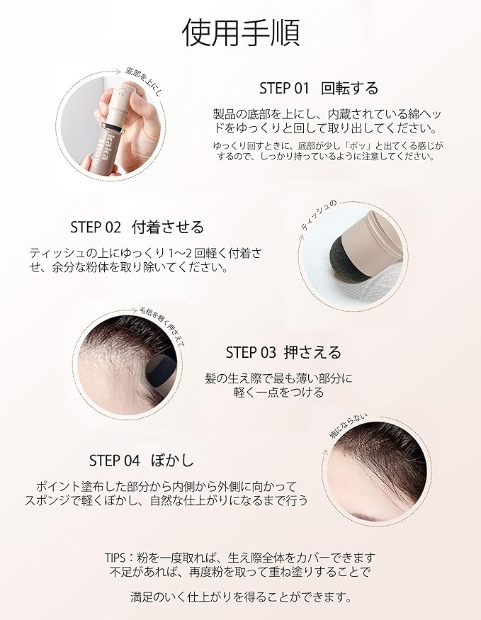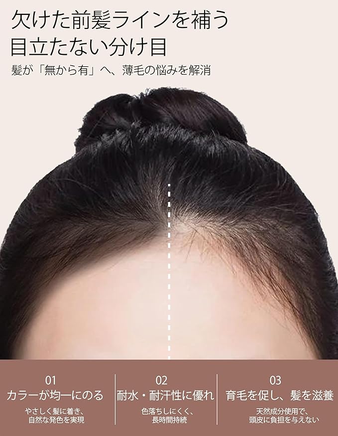 4.【分け目補填マジック】 生え際やつむじ周りのスカスカ部分にシュッとひと吹き!パウダーが髪のすき間を埋めて、地肌を"見えなくする"のではなく"自然な陰影で目立たなくする"技術。ブラシ不要の直塗りOKで、忙しい朝でも5秒で完成!男性のM字はげ隠しにも、女性の白髪カバーにも使える優れものなんです〜