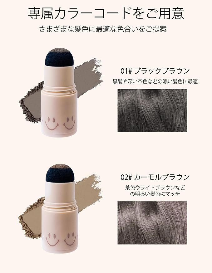 5.【2色展開 男女兼用の万能選手】 #1ブラックブラウンとカーモルブラウンの2色をご用意!1本で髪色に合わせて濃淡調整可能なブレンドパウダーです。毎日使っても長持ちする、家族でシェアできるコスパ最強アイテムです!