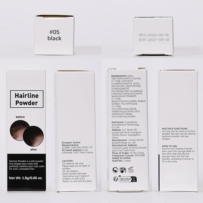 【簡単ケア!薄毛・白髪・生え際隠しパウダー】ボリュームアップ・男女兼用・ウォータープルーフ・無添加・頭皮ケア・ポンポンタイプで手軽にカバー・薄毛隠しパウダー 白髪隠し 生え際 隠す つむじ 頭頂部 髪の悩み (05#黒)