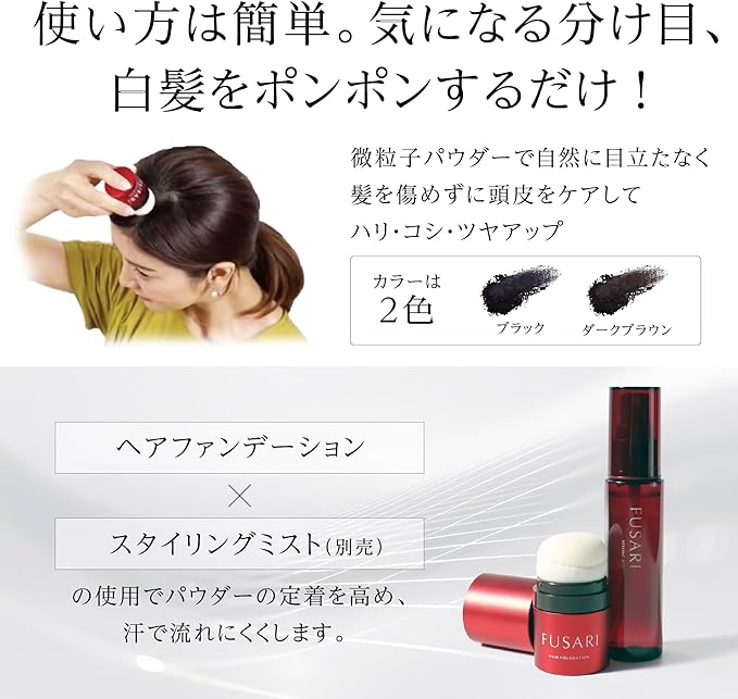 ✅分け目や白髪を自然にカバー。微粒子パウダーが髪を傷めず、頭皮ケアをしながらハリ・コシ・ツヤをアップします。
