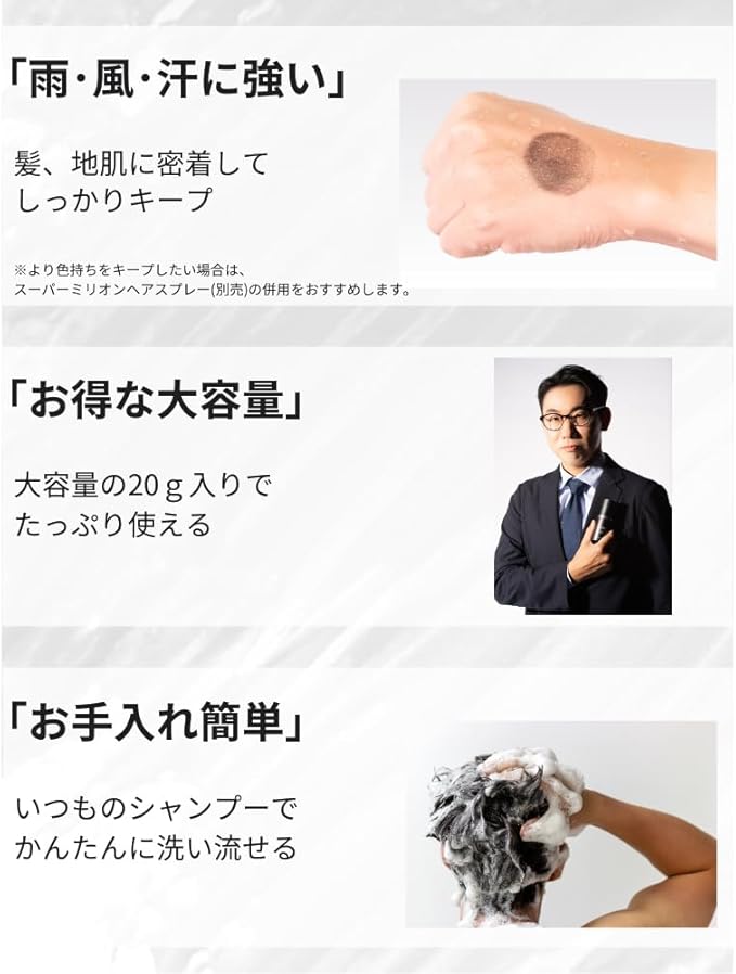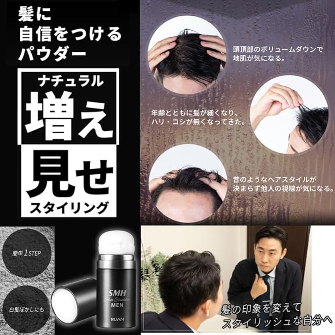 SMHメンズヘアファンデーション 20g No.1 ブラック 薄毛 抜け毛 円形脱毛症 白髪 対策 増毛パウダー 髪 頭皮 分け目 生え際用 薄毛隠し 白髪隠し