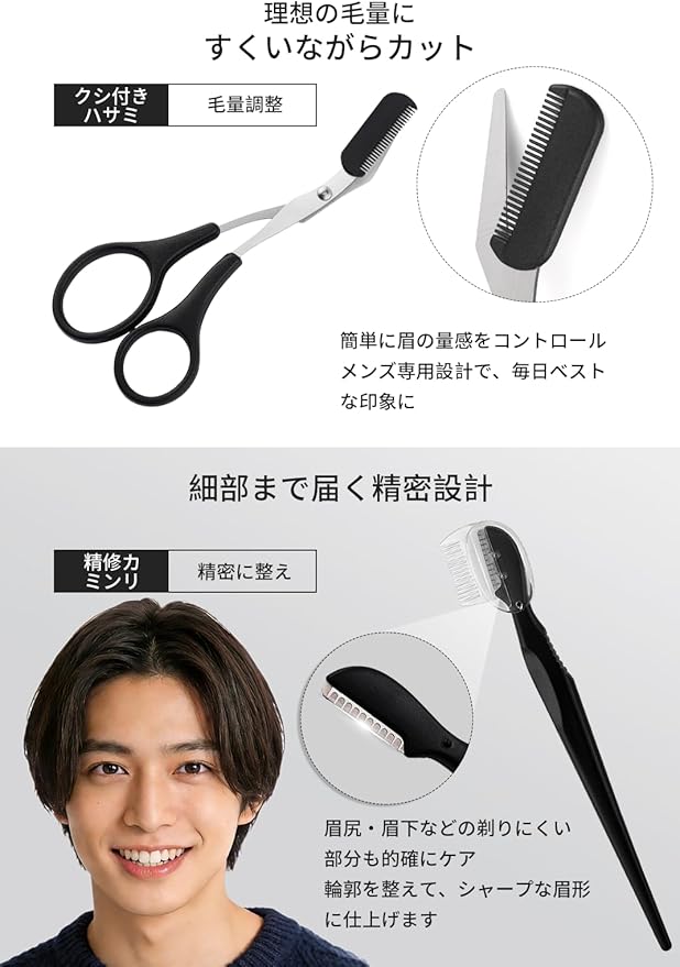 【メンズ美容師が監修】 眉毛 ハサミ まゆげ はさみ 眉毛剃り 毛抜き メンズ 眉毛カット メイクアップセット