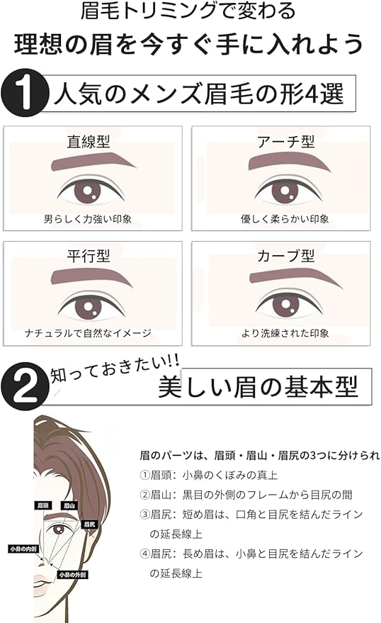 【メンズ専用設計&理想の眉を作れる】メンズの眉の特徴に合わせて最適化された器具は、ビジネス向けのさわやか眉、クールな印象になるスタイリッシュ眉など、誰でもスムーズに扱える形状になっており、プロ級の仕上がりを自宅で簡単に実現できます。