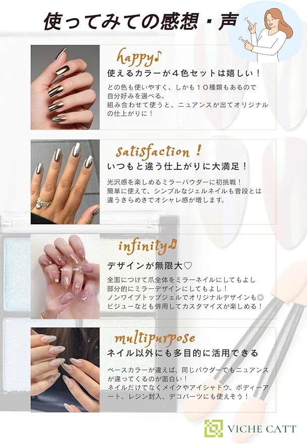 VICHE CATT ミラーネイル パウダー 4色セット ジェルネイル ネイルパーツ (ミラーパウダー NO,3)