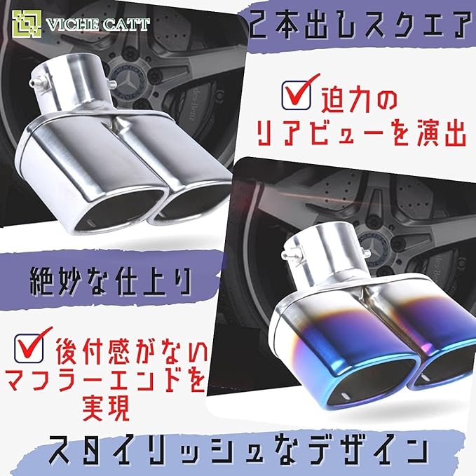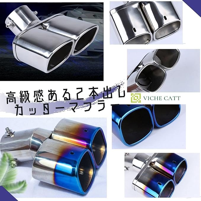VICHE CATT 車用 マフラーカッター 下向き 2本出し スクエア ステンレス マフラー カスタム ドレスアップ(シルバー)