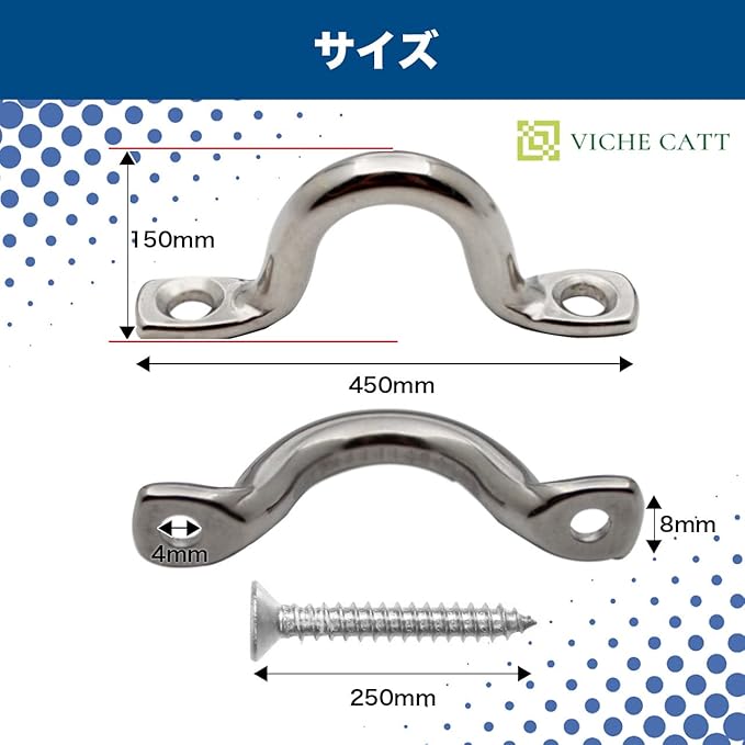 VICHE CATT パッドアイ ステンレス フック アイプレート 金具 20個セット (ネジ40個付) カヤック ボート 固定 船舶 建築 (20個セット)