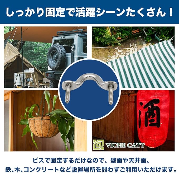 たくさん使える20個セット 屋外でランタンを吊り下げたり、オーニングの固定用など様々な用途に使えるようにたくさん入った20個セットです。自宅や庭、アウトドアで使用する道具など設置場所を問いません。設置に使えるネジ40本付属