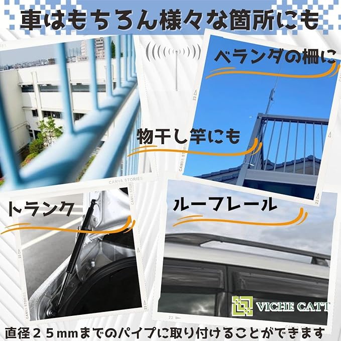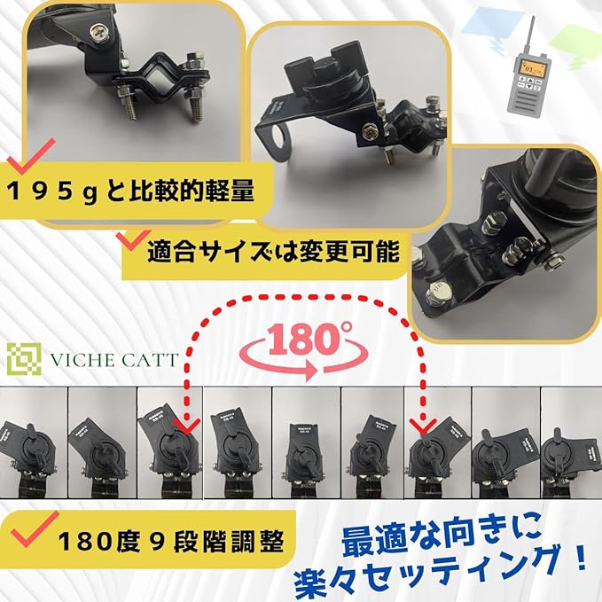 VICHE CATT アンテナ基台 アンテナ アマチュア無線 ベランダ取付 基台 ルーフレール 角度調整可能 (黒)