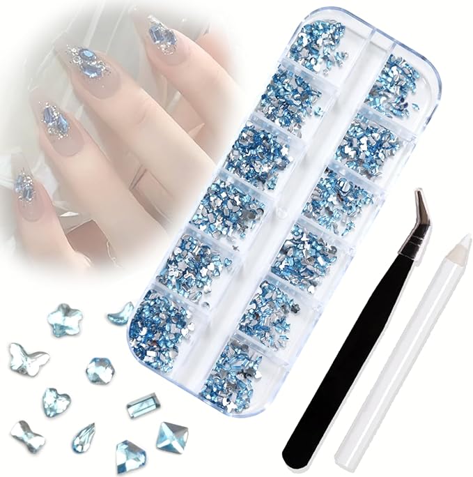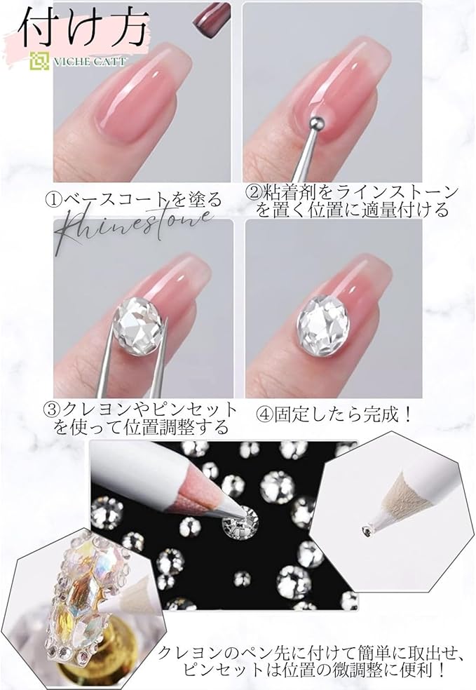 VICHE CATT ネイルパーツ ストーン ネイル ラインストーン ビーズ ピンセットとワックスペンシル付き ネイルアート デコパーツ (ライトブルー)