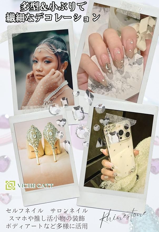 ご自宅やネイルサロンでのネイルデコに最適なラインストーン。初心者やハンドメイドデザインが好きな方にもおすすめ! 小サイズでいろんな形があるので、より繊細なタッチのデコレーションが出来ます。 ネイルアートのほかアイメイク、携帯ケース、ヘアクリップ、ギフトラッピング装飾、推し活グッズなどに多用できます。そのほかパーティやバレンタイン、ウエディングシーンの小物やプレゼントなどギフトにもぴったり。