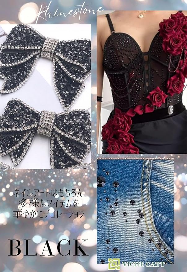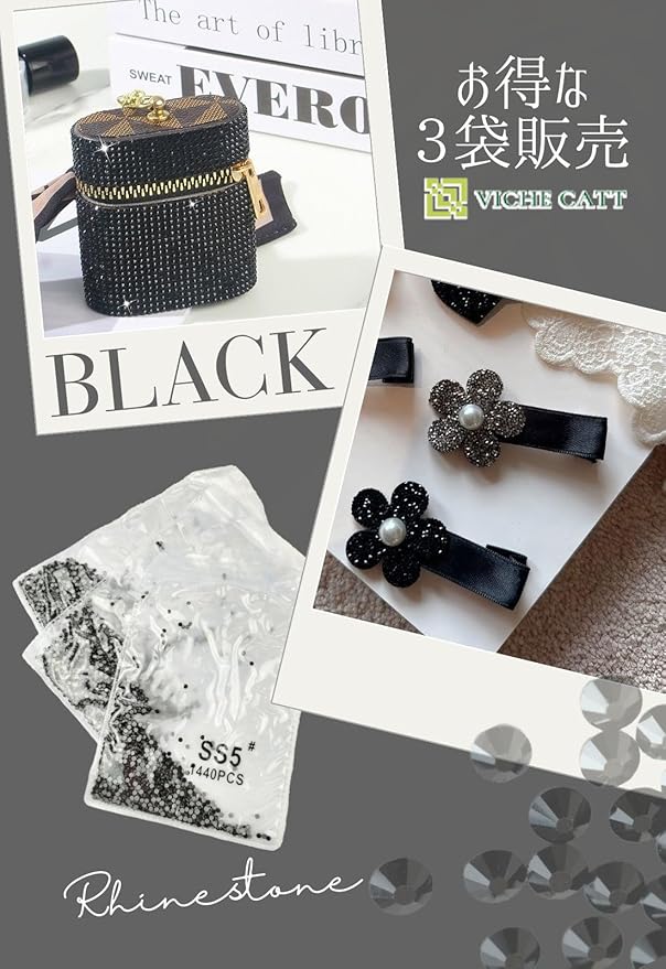 VICHE CATT ラインストーン ブラック ネイルパーツ ブラックストーン デコパーツ (SS20 4.7㎜ 3袋(4320粒))