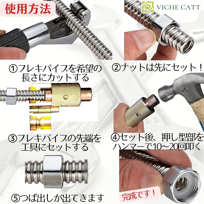 VICHE CATT 水道 用 フレキ パイプ 菅 対応 つば出し工具 ハンマー タイプ (16φ 4分 , 20φ 6分) (16φ 4分, 16φ 4分)