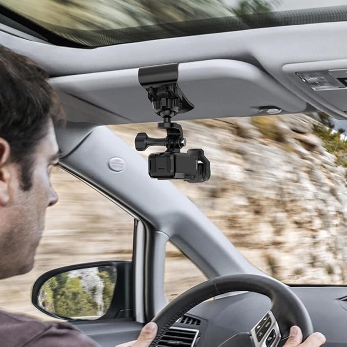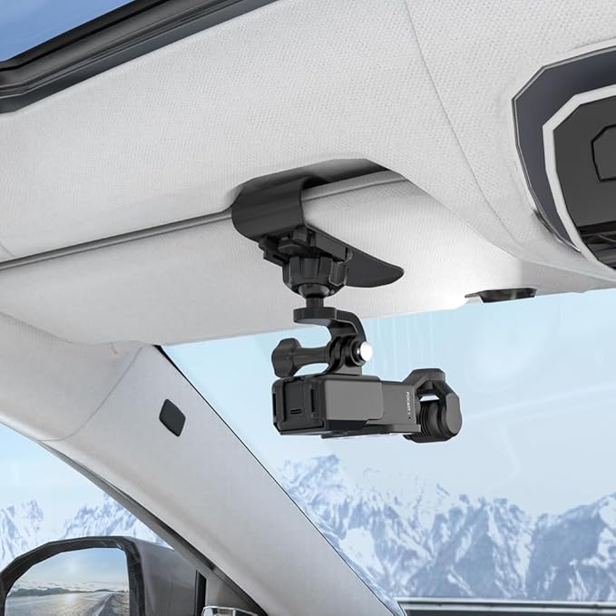 DJI Osmo Pocket 3 カーバイザーカメラマウント - 専用に設計されたこのプログレードのカーバイザーカメラマウントを使って、DJI Osmo Pocket 3 ユーザーなら開けた道のスリルをキャプチャできます。クロスカントリーの冒険を記録する旅行ブロガー、レッスンを録画する運転教師、あるいは単にロードトリップの思い出をシネマティックなクオリティで保存したい人に最適です。