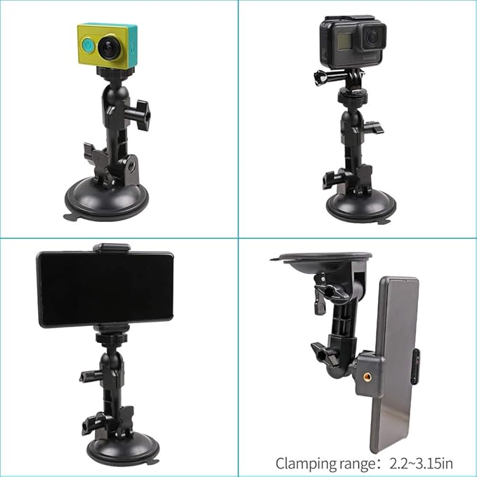 SUREWOカーサクションカップマウントはGoProHero 12 11 10 9 8 7 6 5 4と互換性があり、ボート車両のフロントガラスとウィンドウカメラホルダーはGoPro、DJI Osmo Action 4/3、およびほとんどのアクションカメラと互換性があります