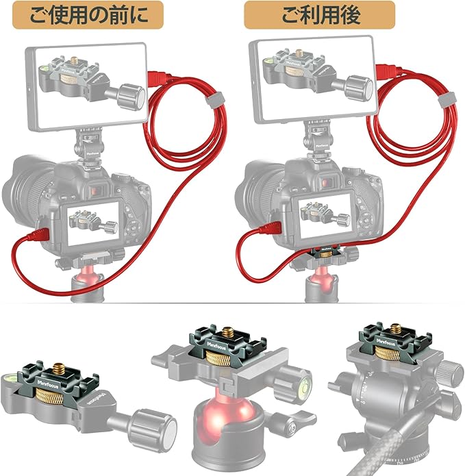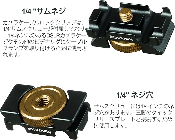 MINIFOCUSカメラケーブルクランプアルカスイスシステム、4つの溝を持つアルミニウム合金テザーケーブルブロッククリップ、すべてのデジタル一眼レフカメラケーブル用USBケーブルロッククリップクランプHDMIプロテクター