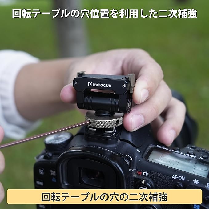 コールドシューインターフェース&1/4インチネジ穴:コールドシューインターフェースは、カメラのホットシューやコールドシューマウントを備えたあらゆるサポートにシームレスに接続します。底面の1/4インチネジ穴は三脚、ボールヘッド、スーパークランプ、自撮り棒、スタビライザーなど各種アクセサリーに取り付け可能。