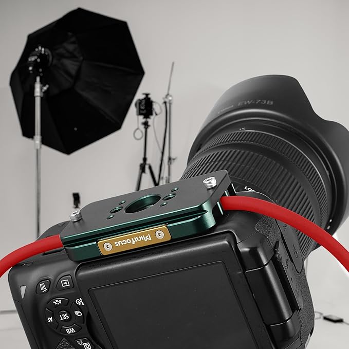 [機能的な設計]不必要な損傷からあなたのカメラの敏感なデータ港を保護する1/4"-20の糸の台紙が付いているあなたのカメラボディに固定されるあなたのケーブルかコードを保つこと。また、プレートは底部に2つの落下防止ネジがあり、不注意で雲台のクランプが緩んでしまった場合でも、カメラとプレートがボールヘッドから前方または後方にスライドするのを防ぎます