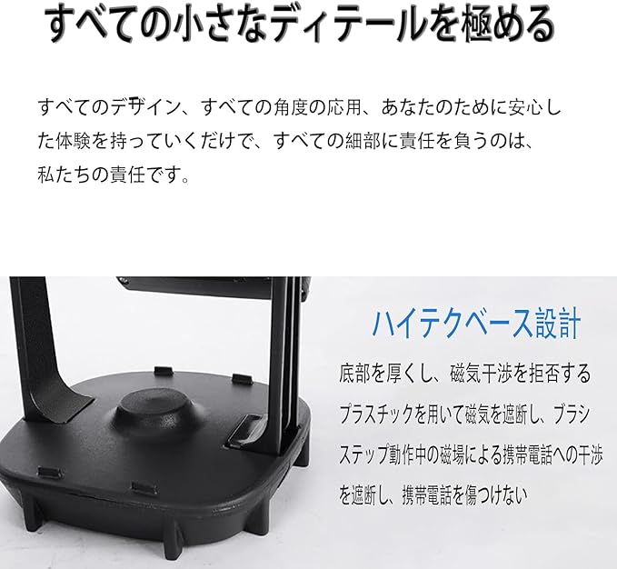 ミュート強化】:従来品の騒音問題を改善するため、装置のスタンド方法を変えて、不快な音が出さないベアリングを採用する。雑音がなく、オフィス、ベッドルームなどの場所でも楽に利用できる。