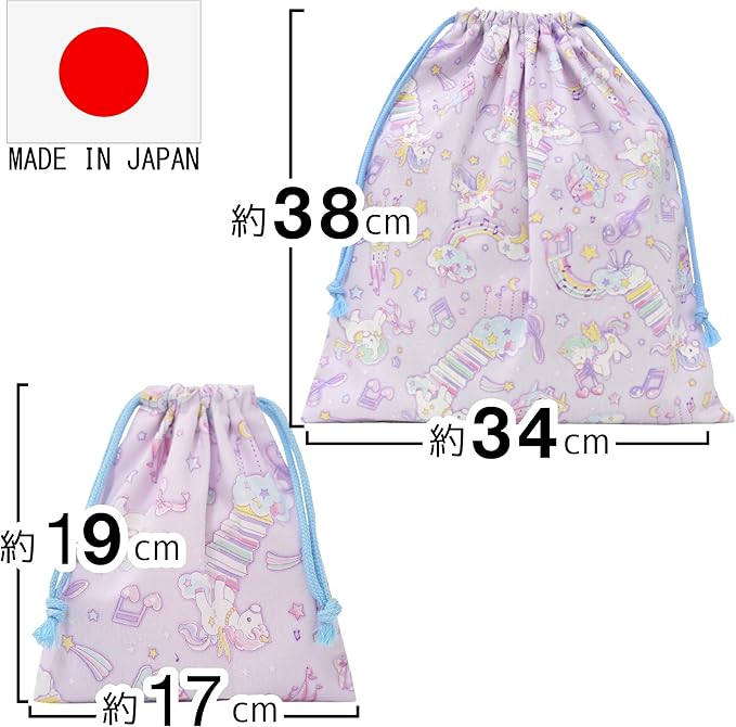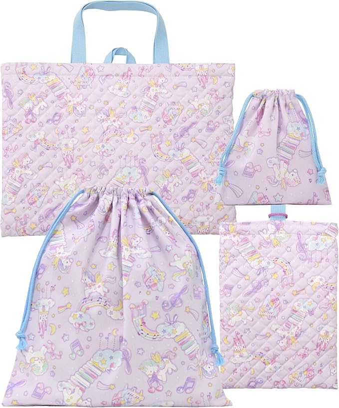 入学 4点セット 入学準備 入園セット 保育園 小学校 レッスンバッグ シューズバッグ 巾着袋 S/L 日本製 子供 キッズ 女の子 ユニコーン パープル