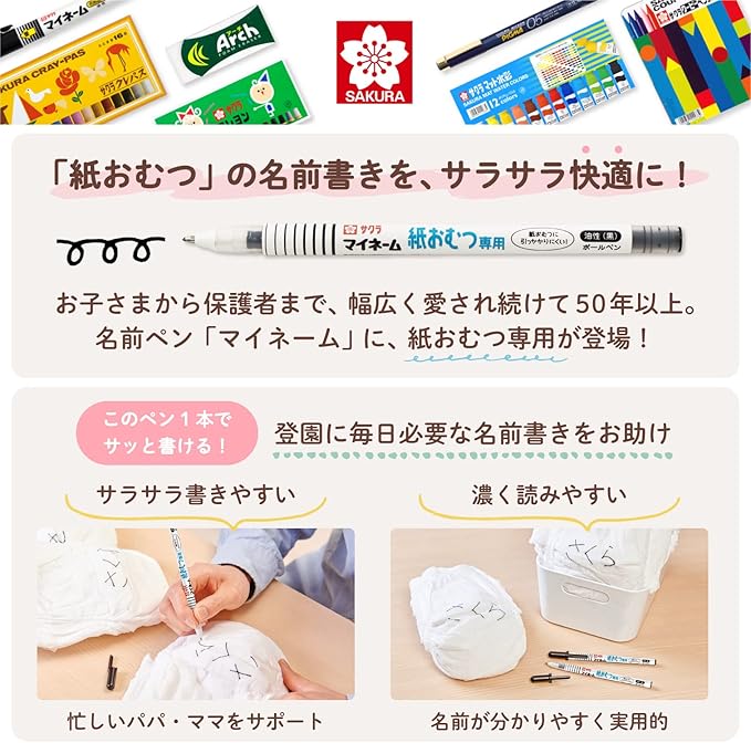 サクラクレパス 油性 ネームペン マイネーム オムツ 紙おむつ専用 3本 YKB-M#49(3)