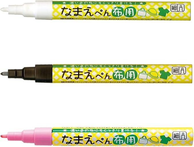 濃い色の布にもくっきり発色する布専用名前書き用マーカーです。