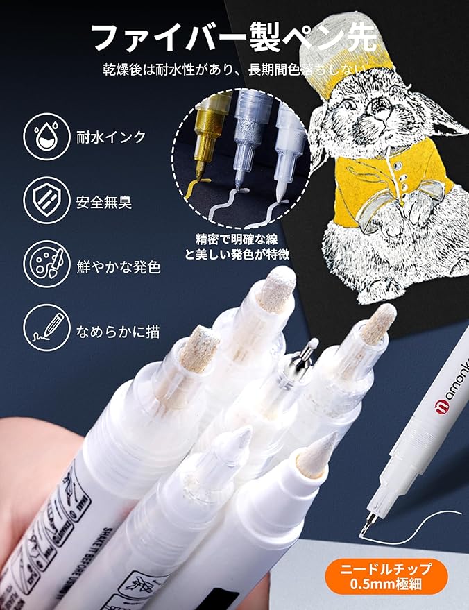 【0.5mmホワイトペン】:3本セット、ニードルチップのホワイトペン。 精密な描画や筆記に最適です。 なめらかな書き心地で、細部まで鮮明に描け、鮮やかな色彩を表現できます。