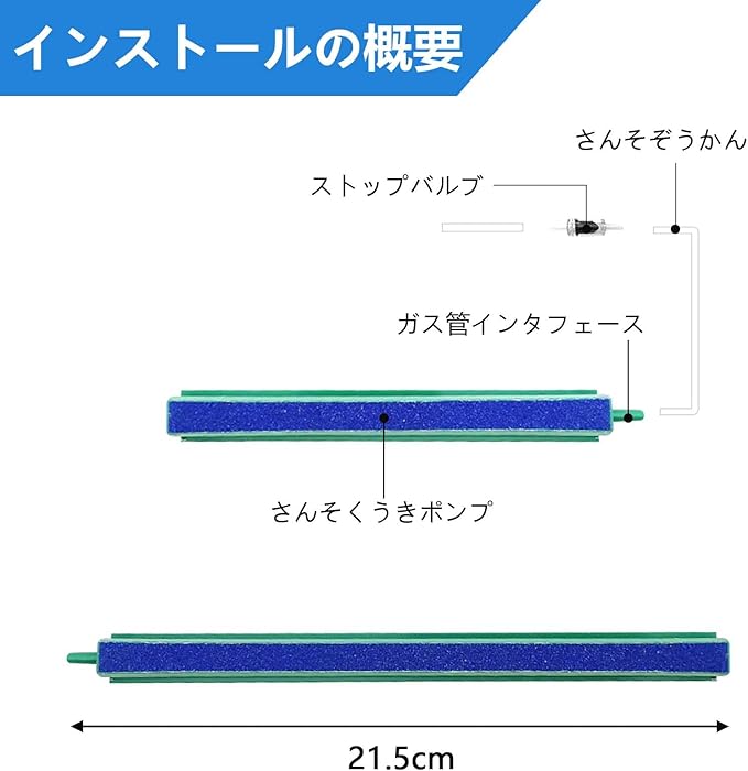 【仕様】水槽用エアーストーンは1個入り、サイズ約21.5cmx1.7cm、4mmエアーホース接続用標準コネクター。