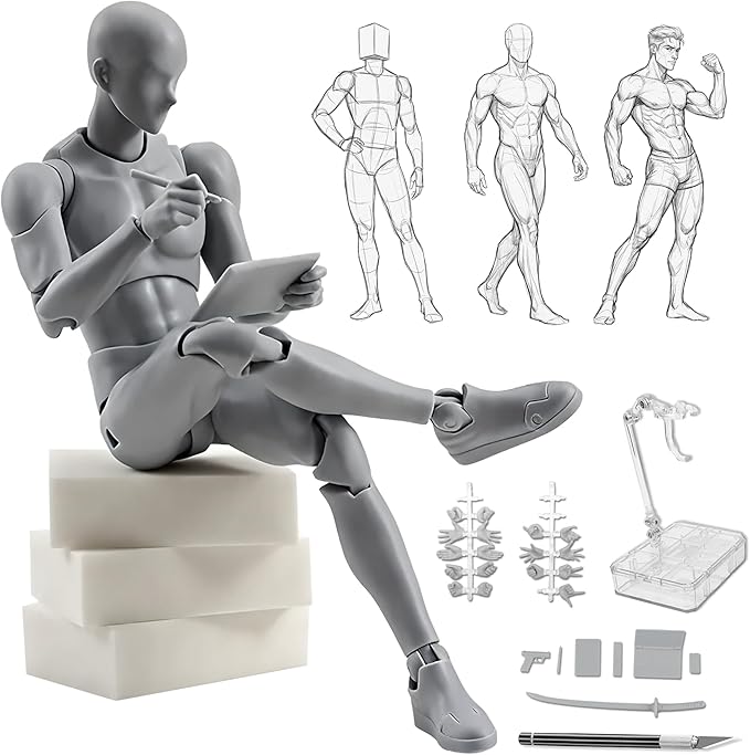 ✅【イラストやデッサンの練習に最適】 イラストや写真の構図、デッサンやデザイン、フィギュアがお絵描き、漫画の練習などにオススメです。あらかじめご確認ください!※細部において、多少の精度のばらつきがある場合がございます。※ポーズの自然さと安定性を優先し、可動域には設計上の制限がございます。※可動部に金属軸を採用しております。ご気になる点がございましたら、ご購入前によくご検討ください。