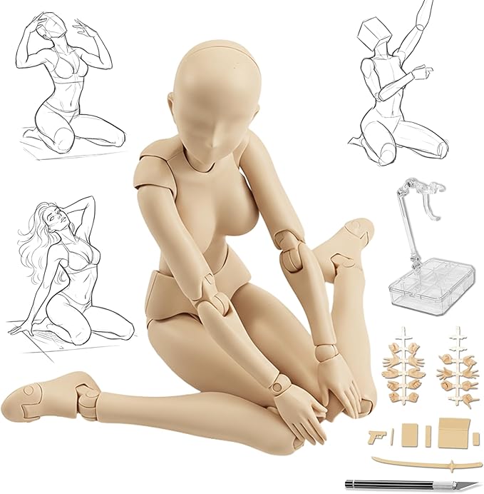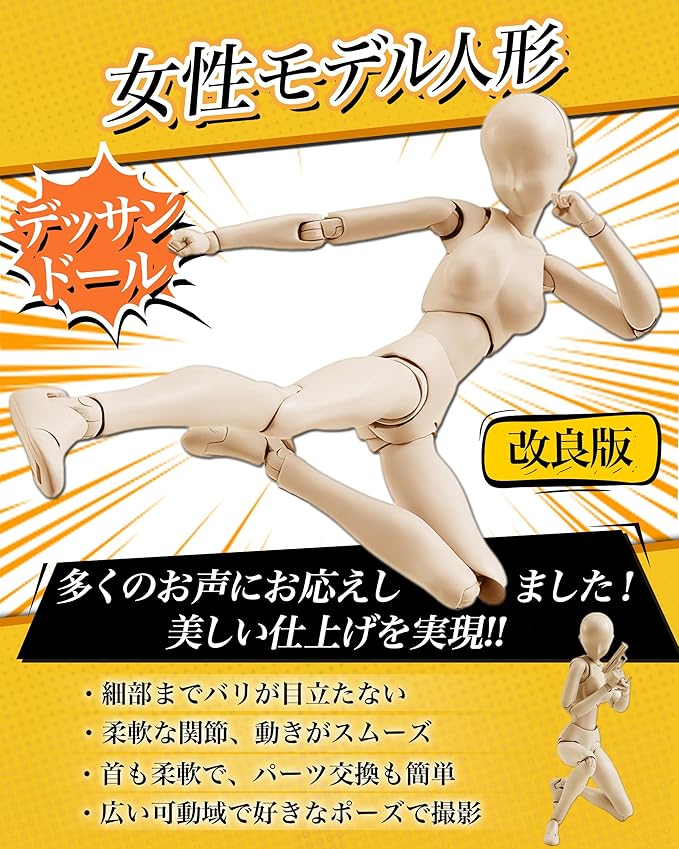 ✅【イラストやデッサンの練習に最適】 イラストや写真の構図、デッサンやデザイン、フィギュアがお絵描き、漫画の練習などにオススメです。あらかじめご確認ください!※細部において、多少の精度のばらつきがある場合がございます。※ポーズの自然さと安定性を優先し、可動域には設計上の制限がございます。※可動部に金属軸を採用しております。ご気になる点がございましたら、ご購入前によくご検討ください。