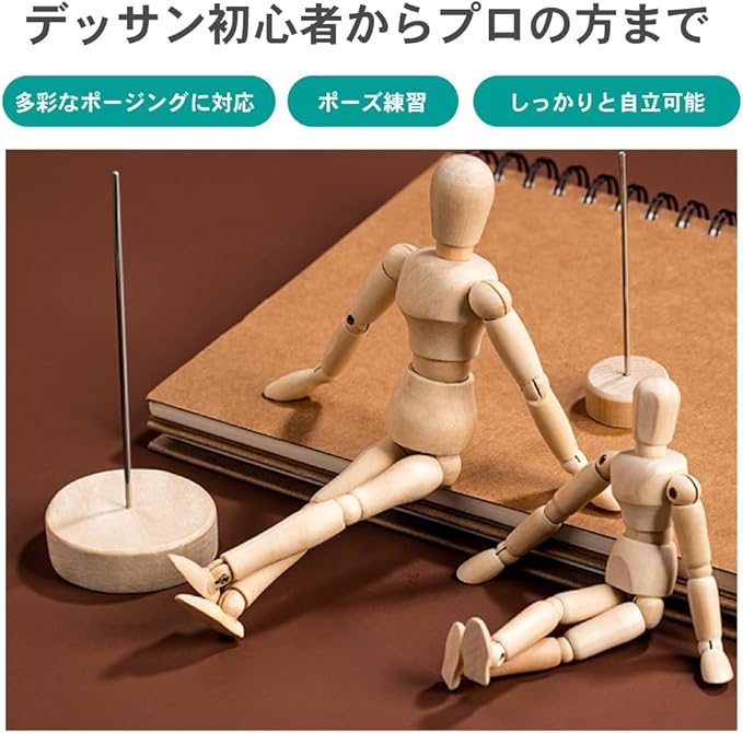 【イラスト・漫画練習用】人体バランスの把握やポーズ構図の確認に便利で、デッサン初心者からプロの方まで幅広く使用されています。付属の台座でしっかりと自立可能。机や棚に設置したままスケッチや資料観察が行えます。