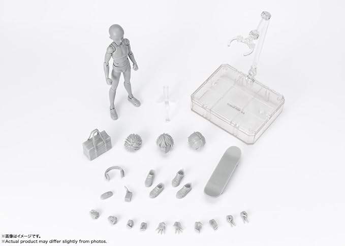 S.H.Figuartsボディくんに学生生活がテーマの「ボディくん -スクールライフ- Edition DX SET (Gray Color Ver.)」が登場。<br>みんなのお絵描きを強力サポート!<br>デッサン用可動フィギュアのボディくん・ボディちゃんシリーズに、新たな頭身のバランス感の新素体が登場!<br>「学生生活」をコンセプトに、少し幼い頭身のバランス感が特徴。<br>学生生活を思わせる小物パーツはもちろん、髪の毛の差し替えや、靴の差し替えも可能になっている!<br>■セット内容<br>本体、交換用手首左右各4種、交換用手繋ぎ手首2種、鞄、紙パック、パン、ヘッドフォン、スケートボード、交換用ローファー<br>交換用運動靴、交換用顔パーツ、交換用髪パーツ3種、収納ボックス、手首ホルダー、ミニブック、専用台座一式