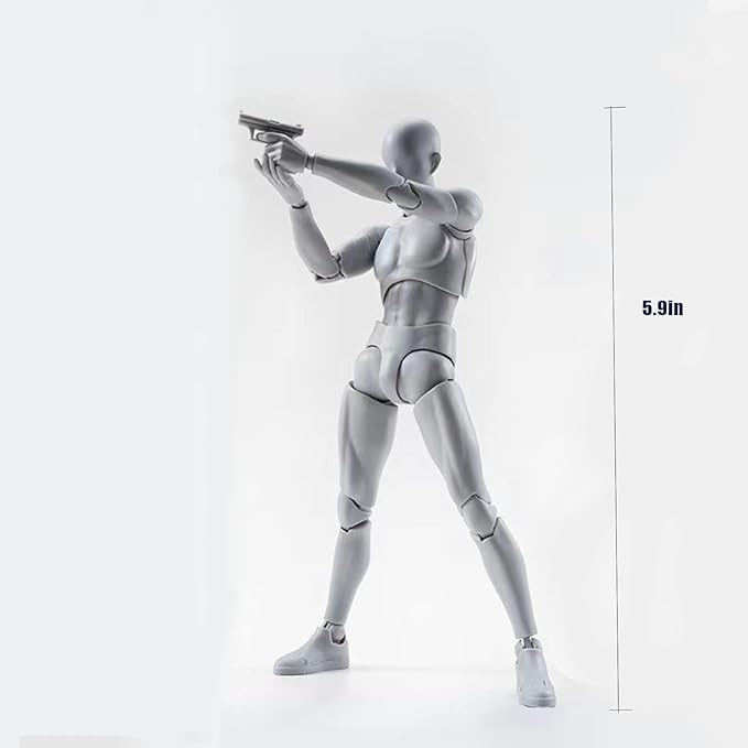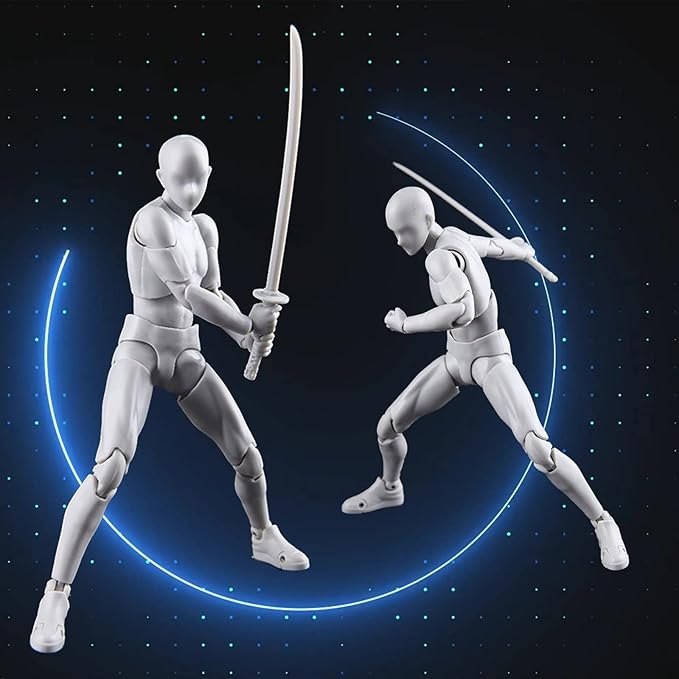 【関節可動】ヘッド、胸、腰、肩、肘、手首、膝、足首など30個関節が可動し、複数なポーズが再現できます。関節交換パーツと豊な武器道具が含まれ、360度回転もできます。プロな描く練習として、人の各動きをもっと把握することができ、絵をより鮮やかにします(セットにはパーツが含まれます)