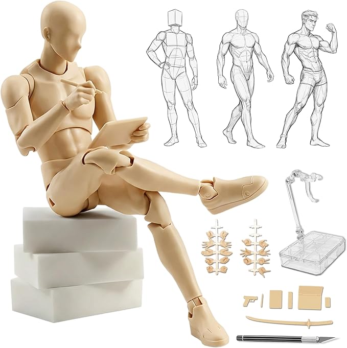 ✅【イラストやデッサンの練習に最適】 イラストや写真の構図、デッサンやデザイン、フィギュアがお絵描き、漫画の練習などにオススメです。あらかじめご確認ください!※細部において、多少の精度のばらつきがある場合がございます。※ポーズの自然さと安定性を優先し、可動域には設計上の制限がございます。※可動部に金属軸を採用しております。ご気になる点がございましたら、ご購入前によくご検討ください。