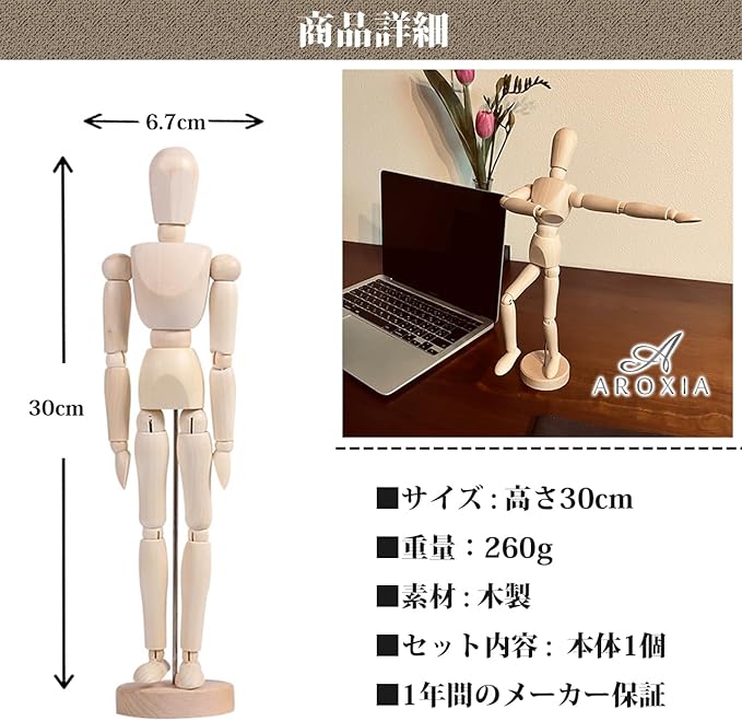 ✅木製の温かみと昔ながらのベーシックなデザインが特徴のこのデッサン人形は、自由自在に変形できるため、アーティストが描きたいポーズを思いのままに再現できます。